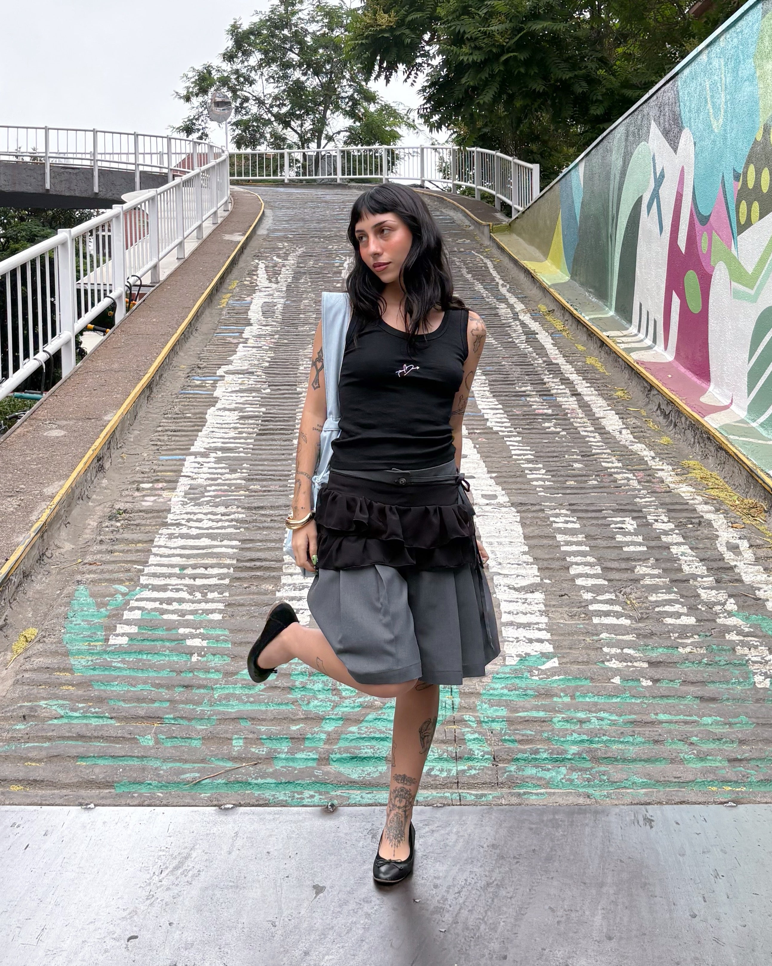 Polera Boxy Fit Negra Estrella Strass Acid Wash